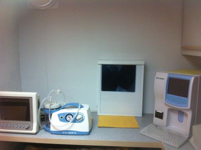 Πραγματοποιούνται όλες οι απαραίτητες εργαστηριακές εξετάσεις με τη χρήση μηχανημάτων τελευταίας τεχνολογίας (αιματολογικός και βιοχημικός αναλυτής, υπερηχοτομογράφος, ψηφιακός καρδιογράφος).